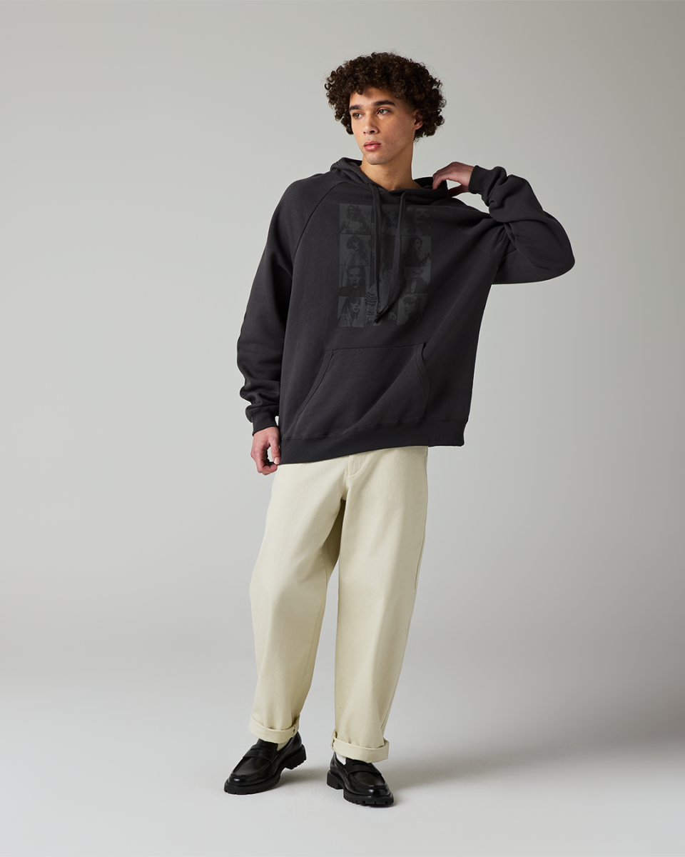 Lavender cropped crewneck featuring an all over print of photos of Taylor Swift.